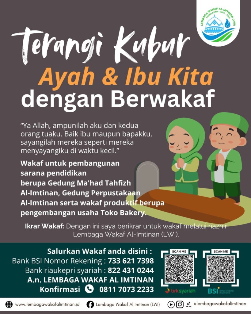 Riau — Lembaga Wakaf Al-Imtinan (LWI) bersyukur atas terkumpulnya wakaf dalam rangkaian kegiatan Peringatan Isra’ Mi’raj Nabi Muhammad ﷺ sekaligus peletakan batu pertama pembangunan Ma’had Tahfizh Al-Imtinan.